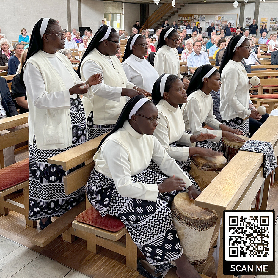 Zum Festgottesdienst am Sonntag, den 30. Juni 2024, brachten die drei Schwestern, unterstützt von der obersten Priorin aus London sowie vier weiteren Missions-Dominikanerinnen aus dem Kloster Strahlfeld (Oberpfalz), afrikanische Klänge beim Einzug in die Kirche zu Gehör.