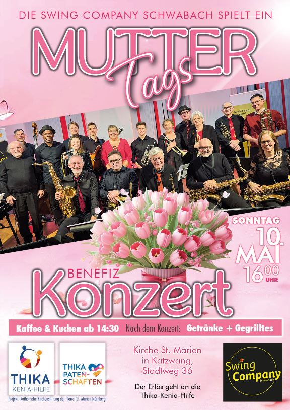 Das "Muttertagskonzert" der Schwabacher "Swing Company" wird mit schwungvoller Musik den Muttertag der anwesenden Gäste am späten Nachmittag bereichern.